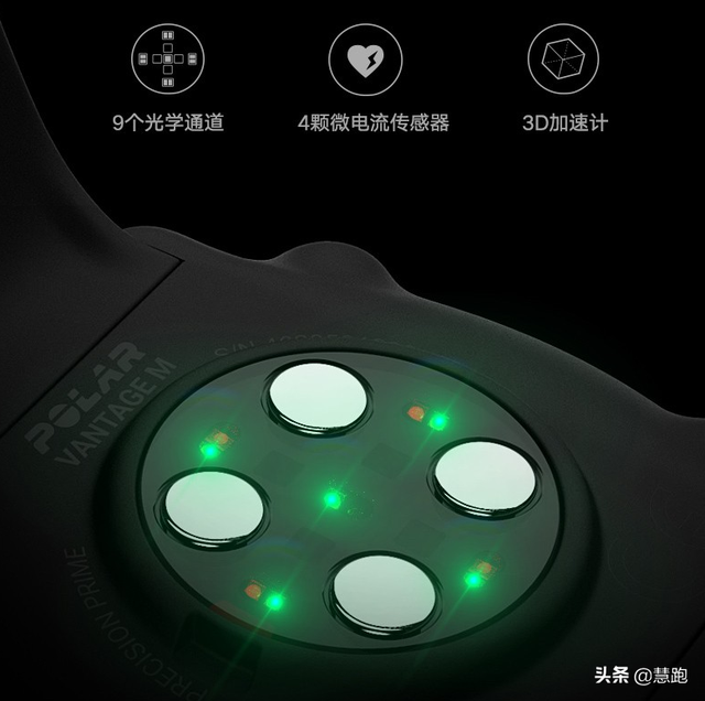 光电手表的背面设有LED光源,光源会发射绿色光线穿透皮肤表面深入血管,然后反射回表底的光学感应器。