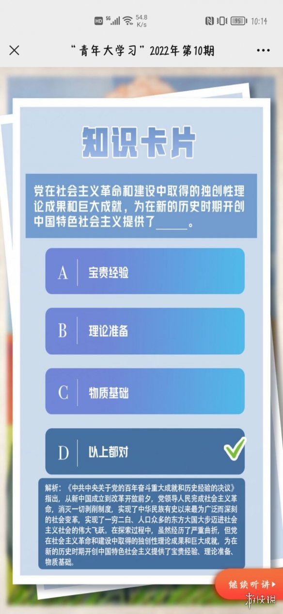 青年大学第11期的题目目前还未放出,还没有做完第10期的小伙伴先来看看青年大学习第10期答案吧。