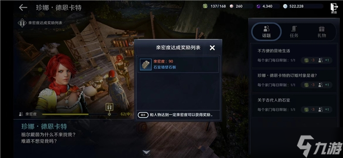 2、当我们的亲密度到达90点,即可获得石室墙壁石板奖励,多做做亲密度任务就行了。
