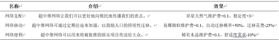 效果:解锁法令“中继网络”、特性“超级中继建造”