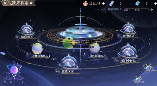 1、梦界探索分为两个星域,每个星域中有4个可探索区域和2个灵体练习副本