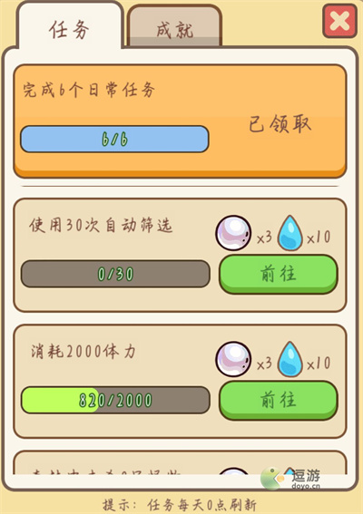 每天完成任务可得到水滴。